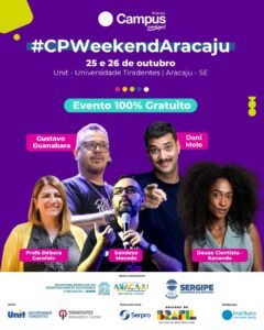Este mês Aracaju receberá, pela primeira vez, a Campus Party Weekend, um dos maiores eventos globais de tecnologia, inovação, ciência e empreendedorismo. A edição, que acontece nos dias 25 e 26 de outubro no campus da Universidade Tiradentes (Unit/Farolândia), promete reunir milhares de pessoas, entre estudantes, pesquisadores, startups, criadores de conteúdo e profissionais do setor, em uma verdadeira imersão no tecnológica.